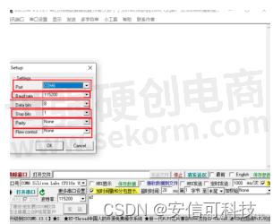 2.打开串口调试软件,选择波特率为115200,停止位为1bit,数据位为8bit,校验位为无,流控为无,打开正确串口;